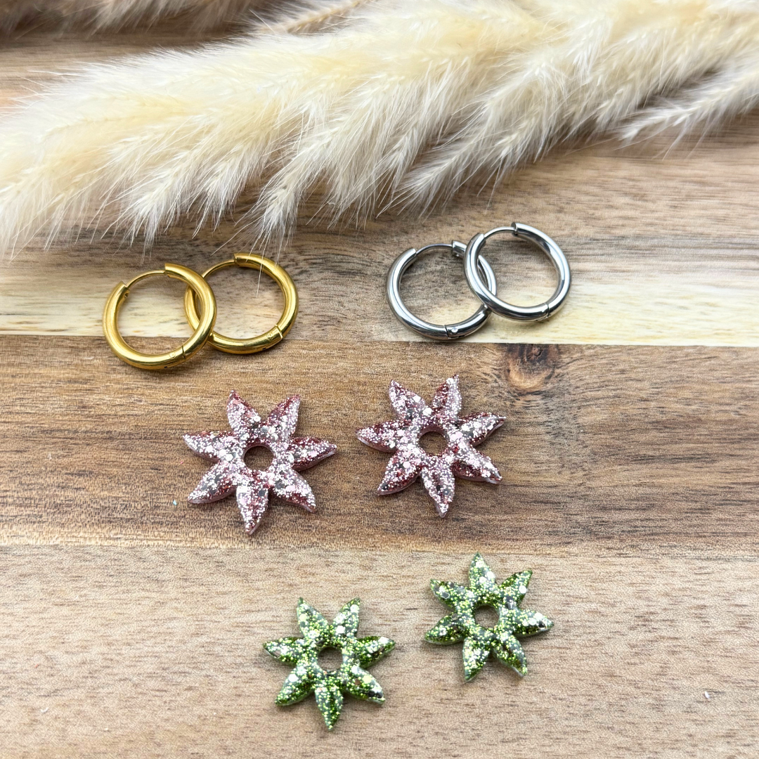 Apportez une touche de nature et d'élégance à votre style avec nos boucles d'oreilles interchangeables en acier inoxydable doré ou argenté de haute qualité, et de pampilles personnalisables en résine.